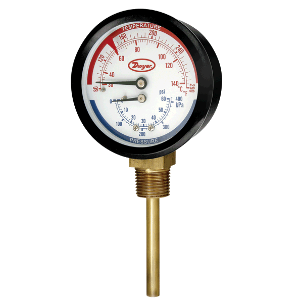 Đồng hồ đo áp suất đơn series TRI2 kết hợp giá trị của áp kế và nhiệt kế riêng lẻ trong một thiết bị. Những bộ phân cực này giúp đơn giản hóa việc lắp đặt, giảm thời gian và tiết kiệm tiền bạc. Mặt số có thể di chuyển với các vạch áp suất màu xanh lam và vạch báo nhiệt độ màu đỏ giúp thiết bị dễ đọc.
