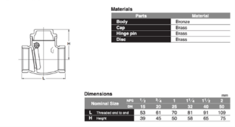 Tính chất cấu tạo Van 1 chiều đồng Kitz PN16R: